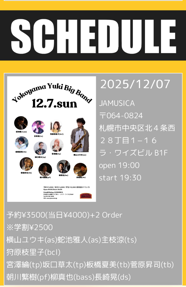 ショータ(tap)横山ユウキ(as)花田進太郎(gt)